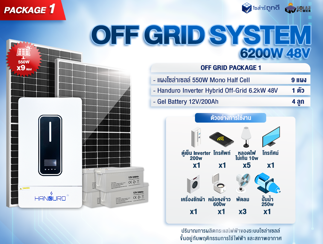 - Handuro Inverter Hybrid Off-Grid 6.2kW 48V จำนวน 1 ตัว